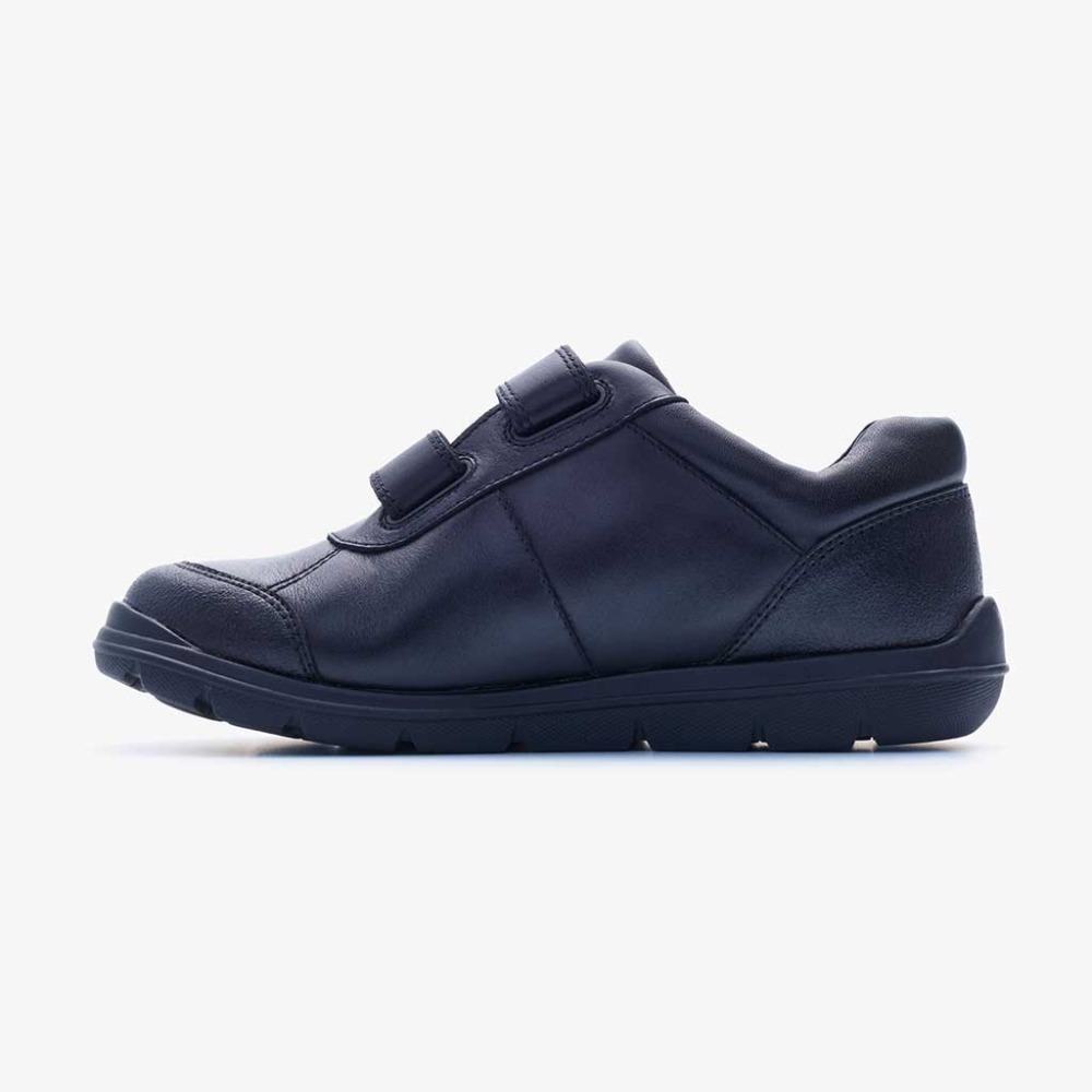 The Galaxy school shoe boasts a comfortable design suitable for all children. Made with premium leather and recycled materials this shoe offers growing feet the height of comfort and protection. The shoe is designed with busy school days in mind, with a tough and grippy sole, toughened toe and cushioned insole.