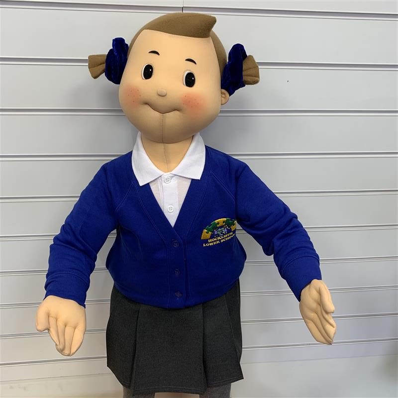 Royal blue cardigan with the Hockliffe Lower School logo embroidered onto the left breast.
