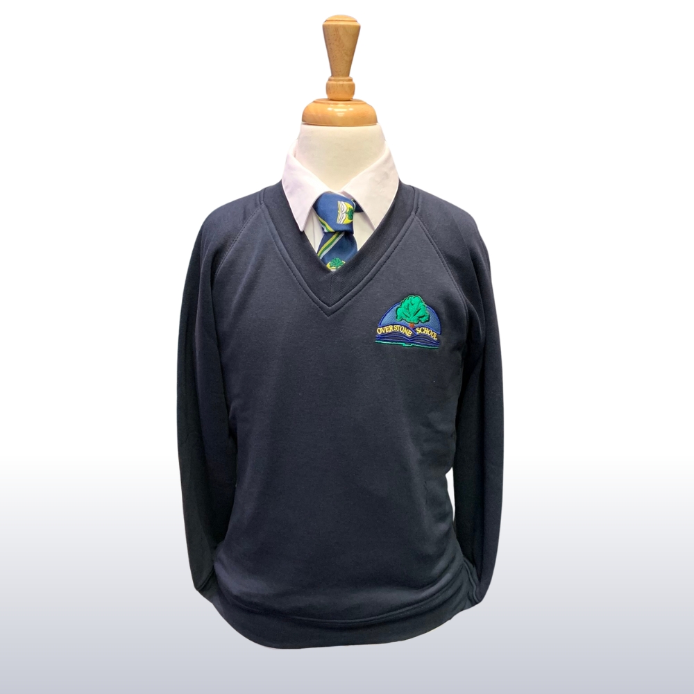 Navy sweatshirt with the Overstone Combined School logo embriodered on the left breast.